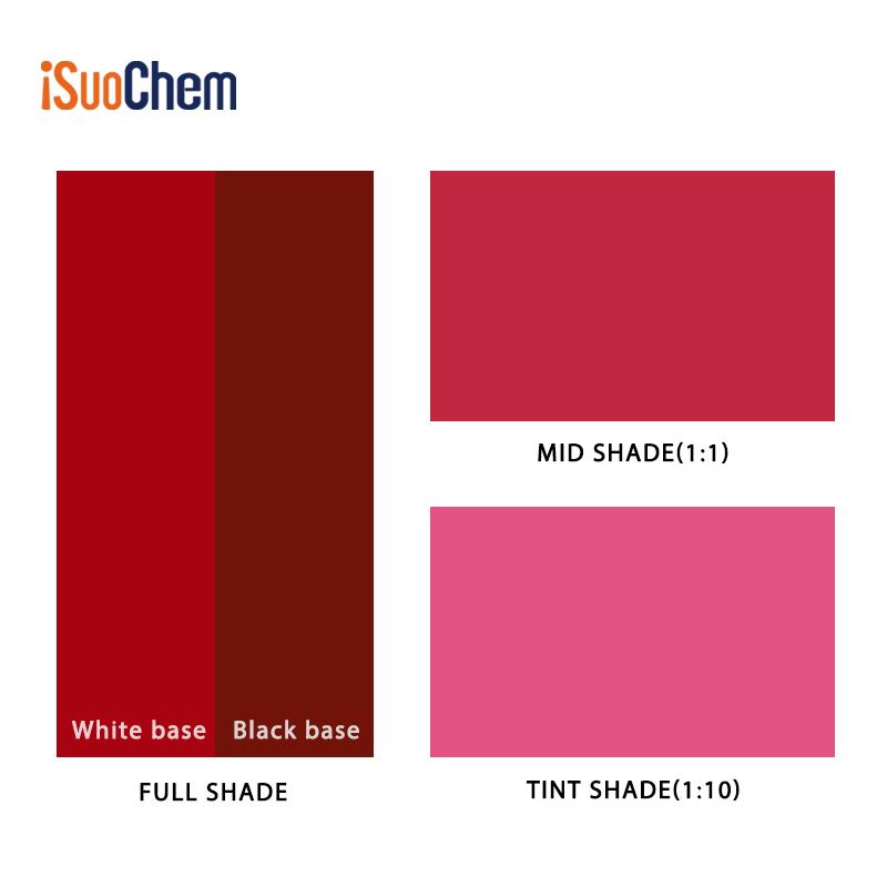 1. Красный 48:2 демонстрирует «хорошую диспергируемость» и «превосходную диспергирующую способность», обеспечивая легкое и равномерное проявление цвета в процессе производства.2. Красный 48:2 В концентрированной серной кислоте приобретает пурпурно-красный цвет, при разбавлении образуя сине-красный осадок; в концентрированной азотной кислоте — коричневато-красный цвет; а в растворе гидроксида натрия — красный цвет.